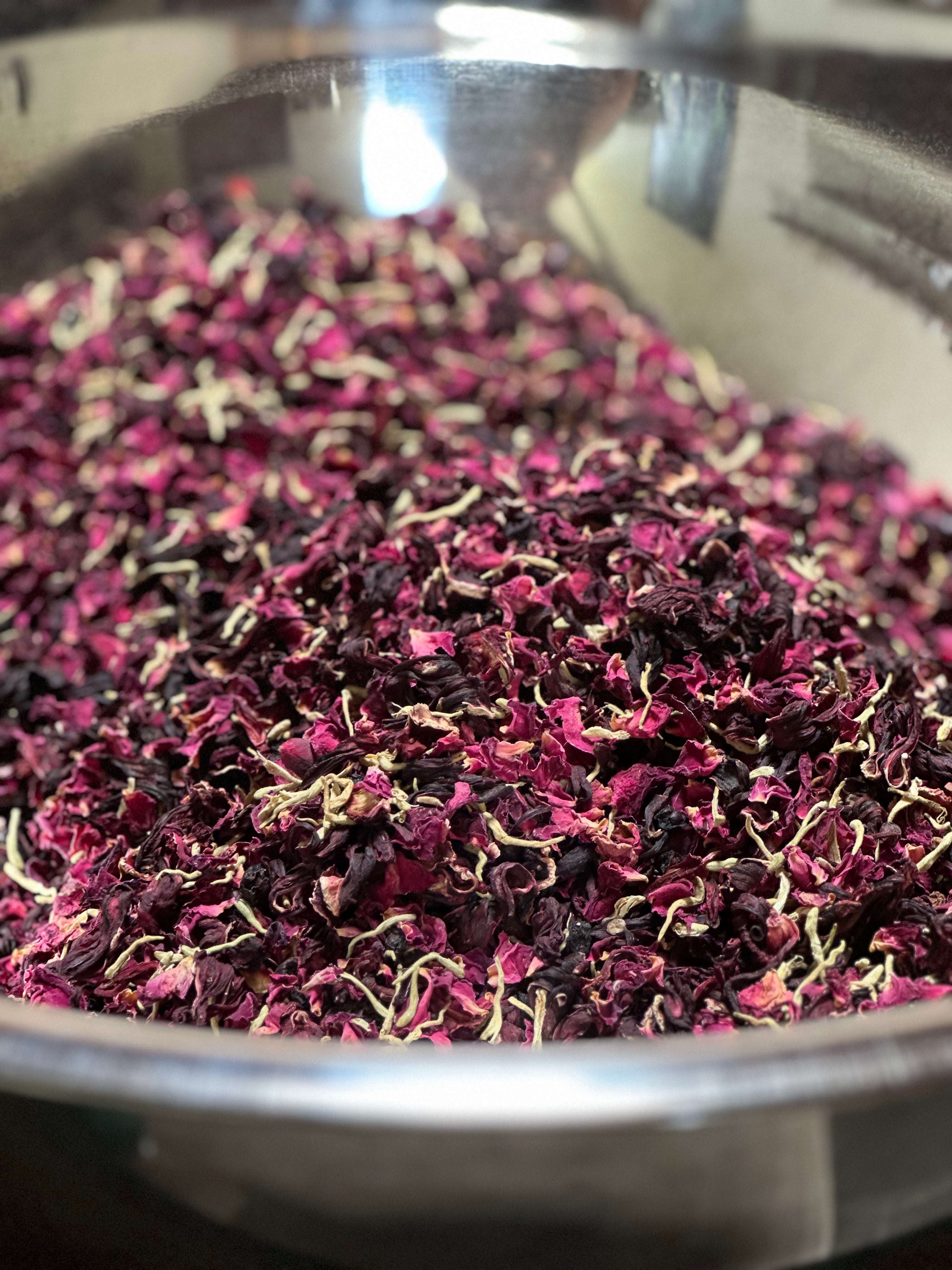 This blend is a tart floral, with red Roses, Hibiscus, Honeysuckle and Schisandra berries - all certified organic. 3oz of loose leaf botanicals.